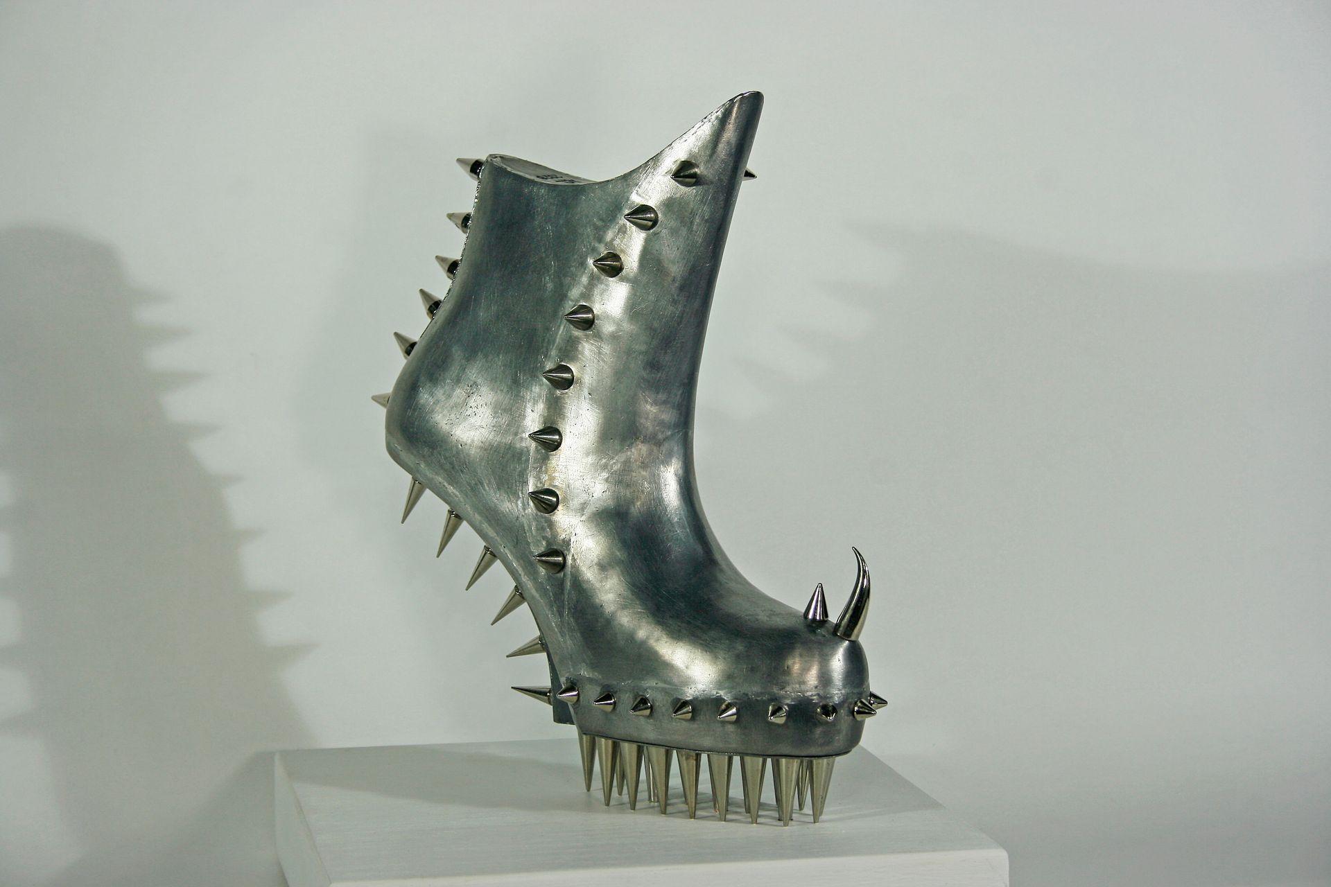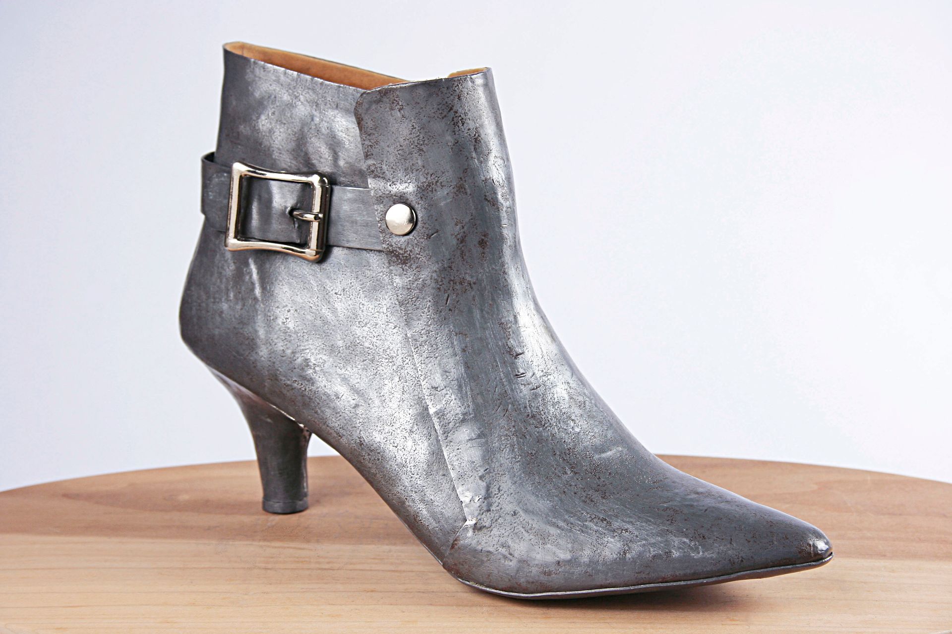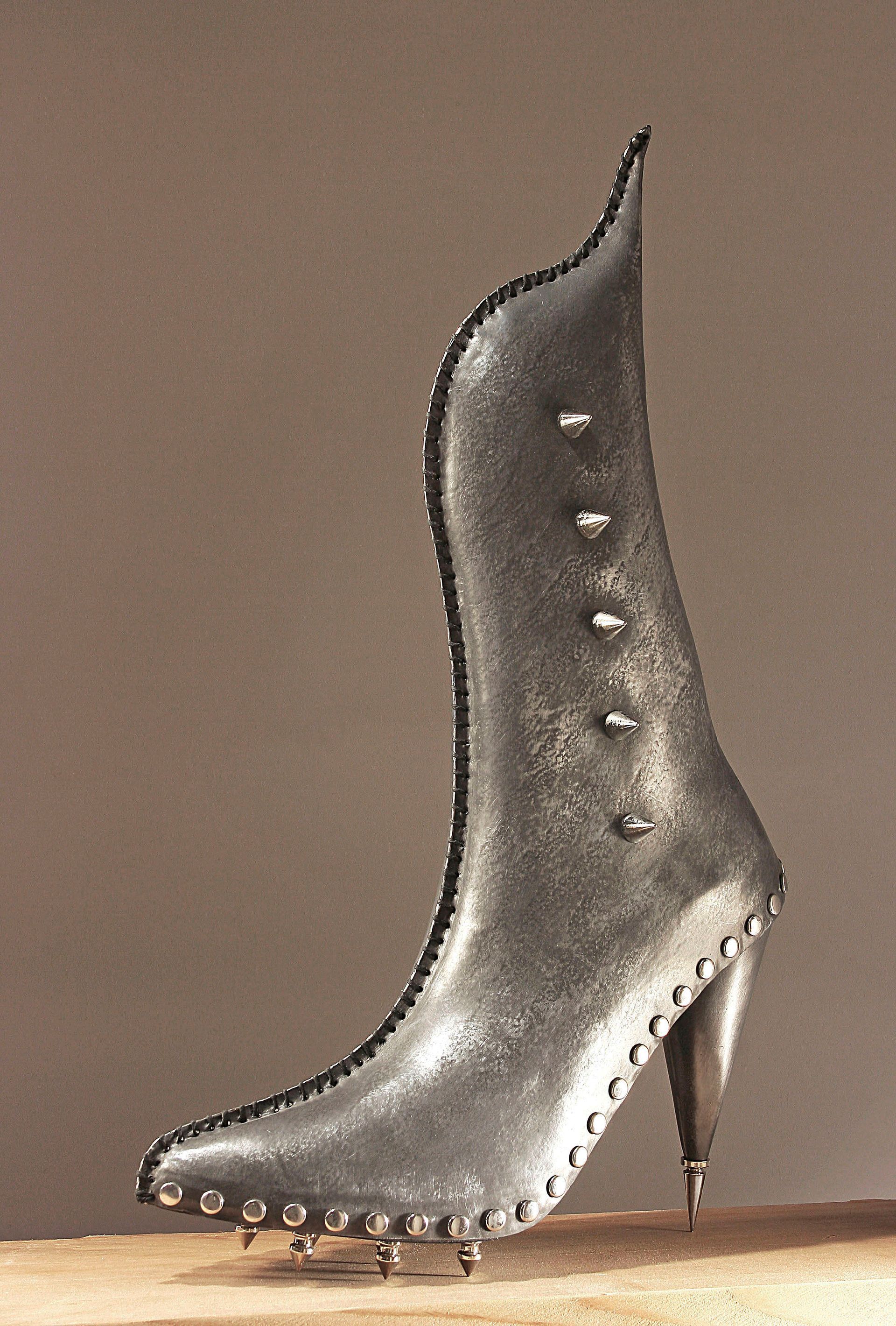 After years of working on other sculptural projects, I recently tapped into the reservoir of professional experience that had engaged me for nearly two decades: footwear design. I am developing my concept of footwear as art, as a contrast to fashion. This focus, as well as the counterintuitive use of lead as my primary medium, allows shoes to be seen symbolically from a fresh perspective.